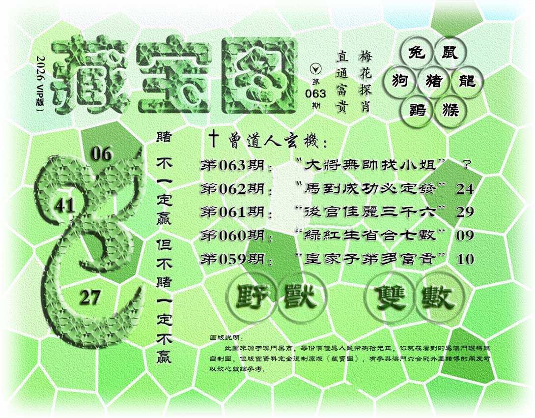 【解正版藏宝图】060期:【绿红生肖合七数】