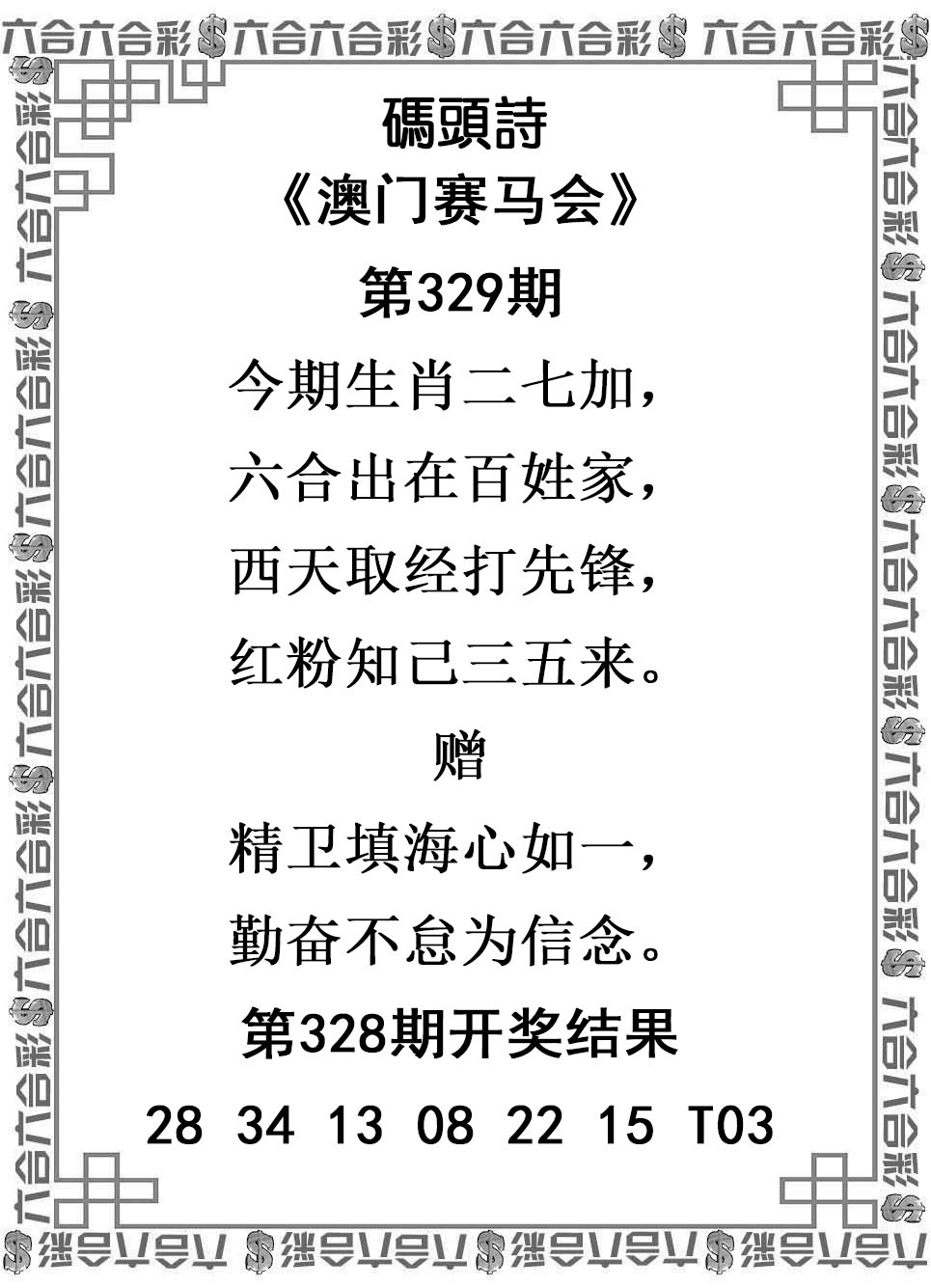329期澳彩码头诗解:今期生肖二七加,六合出在百姓家,西天取经打先锋,红粉知己三五来。综合特肖:鸡羊牛狗猪马综合主肖:鸡羊牛狗